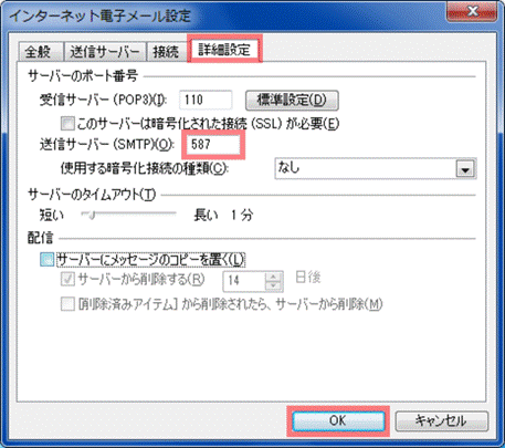 6. 「詳細設定」タブをクリックし、以下のように設定します。