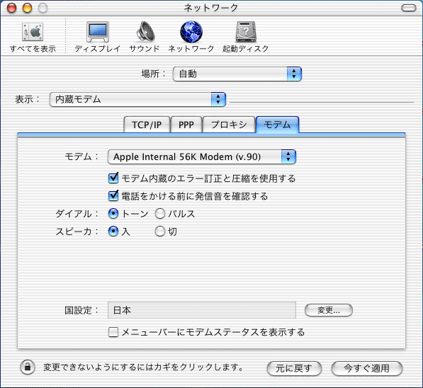 [モデム内蔵のエラー訂正と圧縮を使用する]:チェック