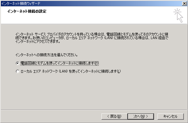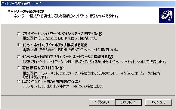 Windows2000 ネットワークの接続ウィザードでの設定方法
