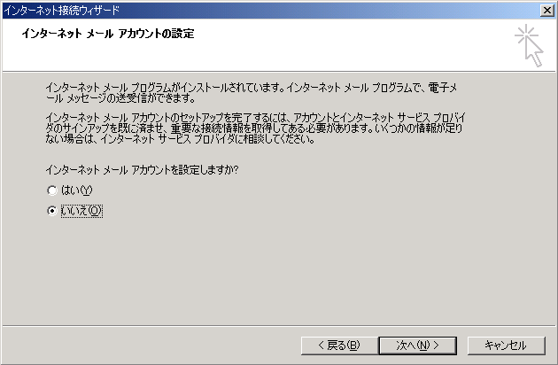 [いいえ]にチェックを入れ、[次へ]ボタンをクリックします。