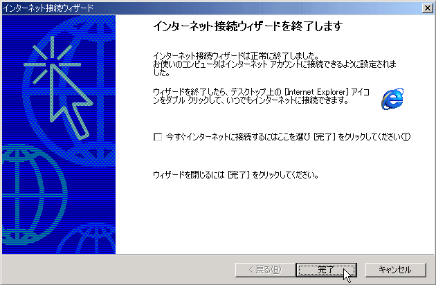 ※[今すぐインターネットに接続する場合はここを選び、[完了]をクリックしてください]にチェックを入れた場合、ブラウザーが起動します。すぐに接続しない場合は、チェックを外します。